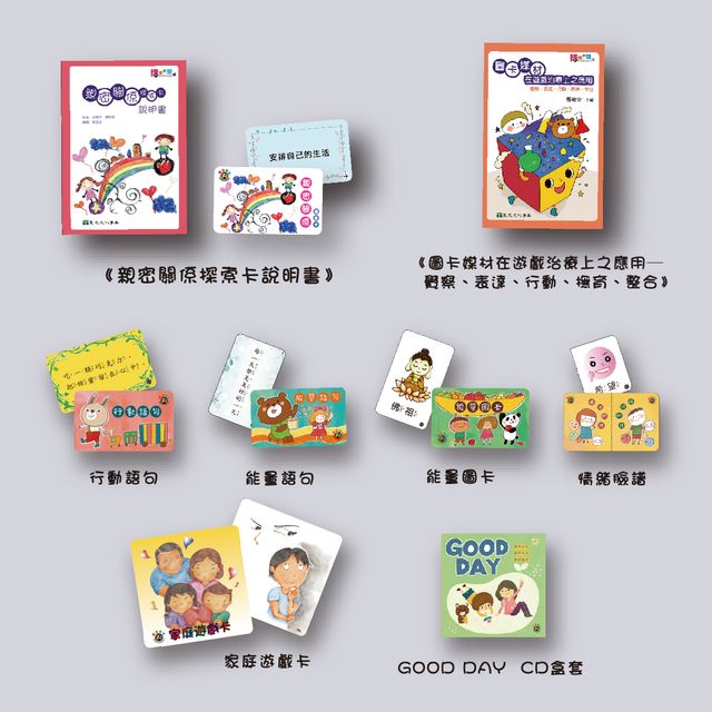 熱愛兒童、關心兒童、想為兒童的幸福盡點心力,是我們的心願。「家庭遊戲卡」、「情緒臉譜」、「能量圖卡」、「行動語句」、「能量語句」和「『GOOD DAY』CD盒套」等媒材的完成,可以說是「陪著你玩」遊戲治療團隊在兒童輔導實務中耕耘學習多年的心得。我們深信每個人都有潛藏的能力足以修補生命中的缺角。期待這些媒材可以幫助輔導人員接觸、瞭解兒童,並陪伴他們在能量充足時再出發!