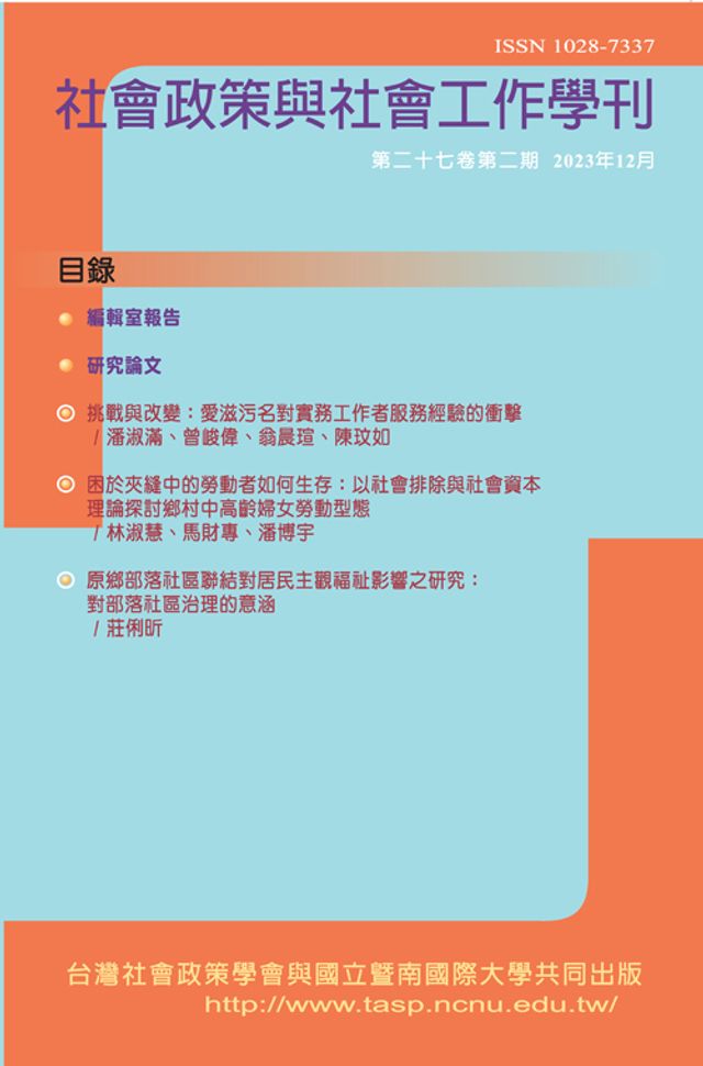 挑戰與改變:愛滋污名對實務工作者服務經驗的衝擊/潘淑滿、曾峻偉、翁晨瑄、陳玟如