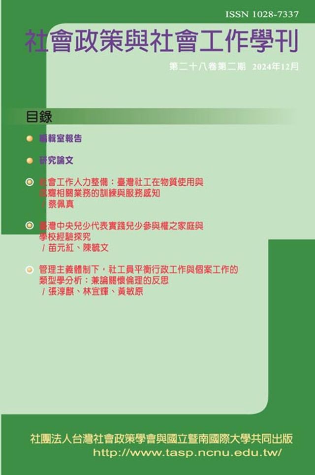 管理主義體制下,社工員平衡行政工作與個案工作的類型學分析:兼論關懷倫理的反思/張淳麒、林宜輝、黃敏原